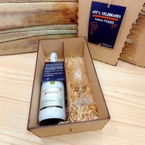 Caja para botella de vino con grabado en tapa